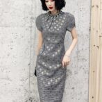 アーバンスタイル☆ドット柄スレンダーワンピース AK001