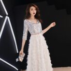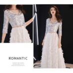 キラキラ☆スパンコール装飾Vネック フェザー調ロングスカート パーティードレス GR003