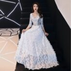 ※ドレスはデリケートな素材でできているため、取り扱いに注意してください。着用時にブローチやアクセサリーが引っ掛からないようにご注意ください。