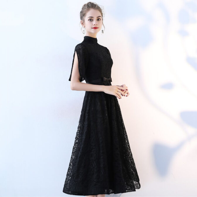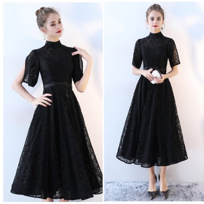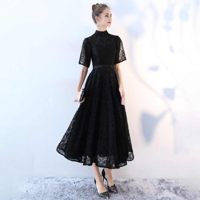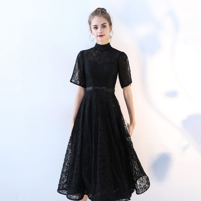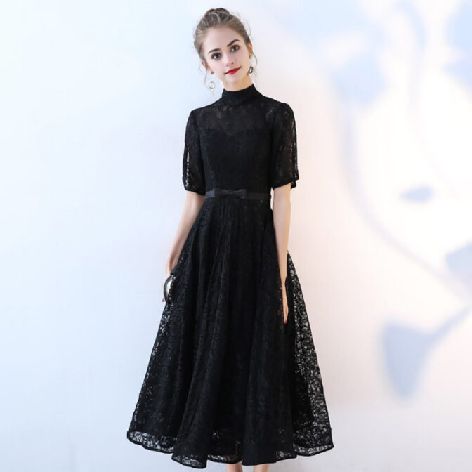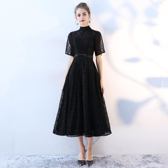 ハイネック総レースミディアムドレス RM007