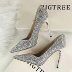 ハイヒール9.5cm★パーティ結婚式 特殊PU素材 全8色 22-25cm BT002