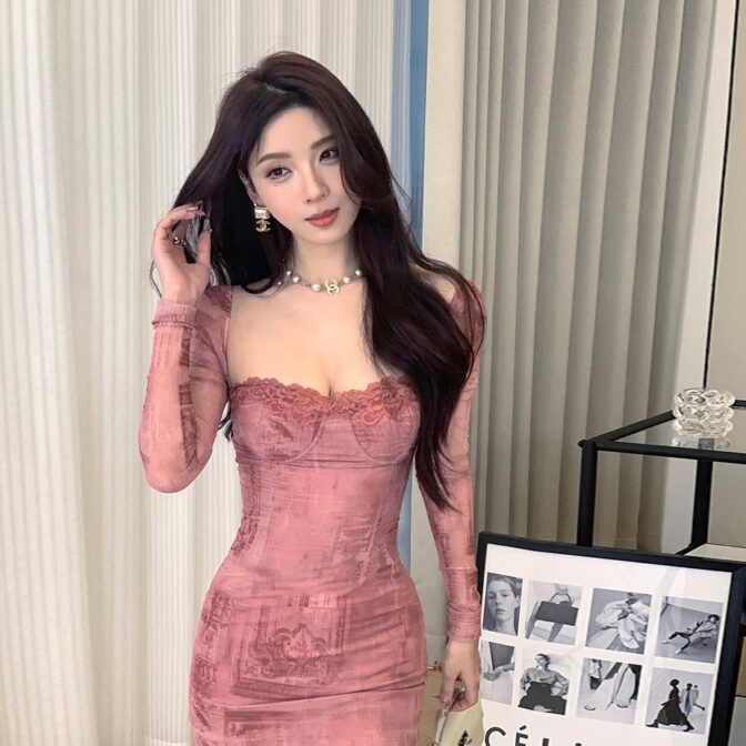 美しいくすみピンク色が魅力的なロングスカート 長袖 パーティードレス。デコルテラインを美しく演出するネックデザインと、ウエストをしっかりと引き締めるストレッチ加工が特徴です。また派手さを抑えた大人向けのくすみピンクカラーの生地に特殊な加工を施すことで散りばめられた模様が飽きの来ないデザインです。パーティーシーンや特別なイベントでの着用に最適な華やかな一着です。