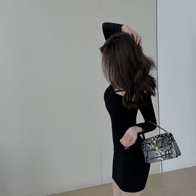 [ワンピース, ブラック, デコルテ, ショート丈, エレガント, デート, 韓国ファッション, パーティードレス, お出かけ, 女子会]