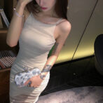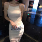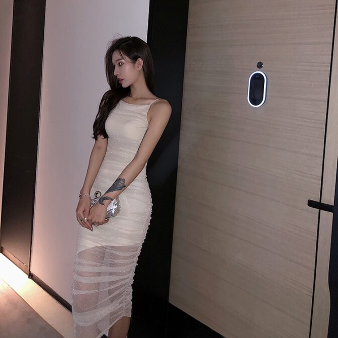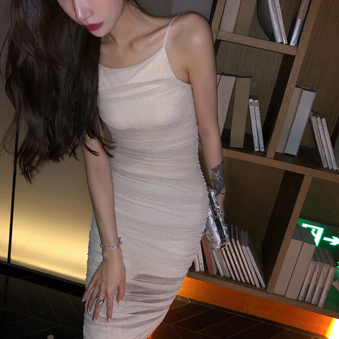 タイト&フィット★ラメアプリコットワンピース XQ093