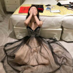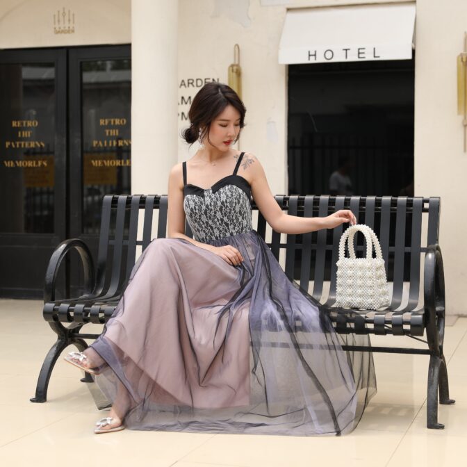 ロングドレス☆大人上品感 おしゃれ☆ピンク&ブラックチュール WS001