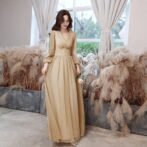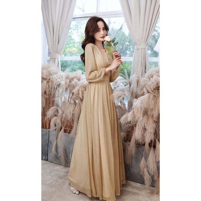 Vネック シャンパン 優雅 キラキラ ロングドレス パーティー GR005