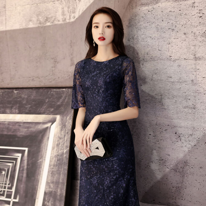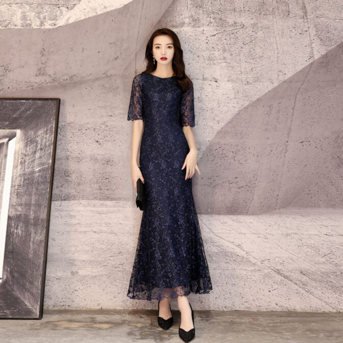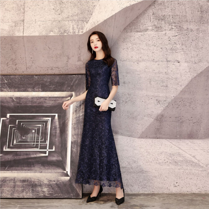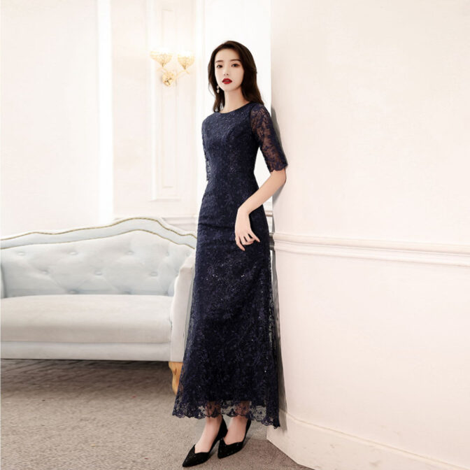 エレガント 総レース 刺繍 シースルー 美ラインドレスワンピース ME001