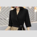 ジャケット風トップスのバイカラーエレガントロングドレス GR001