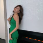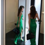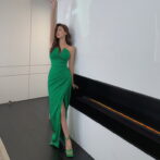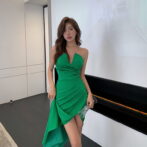 チューブトップ★スプリットロング”グリーン”イブニングドレス XQ113