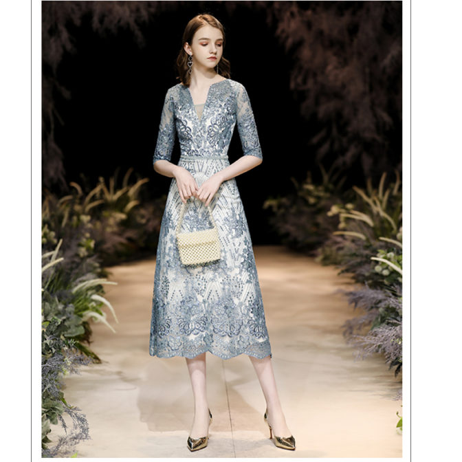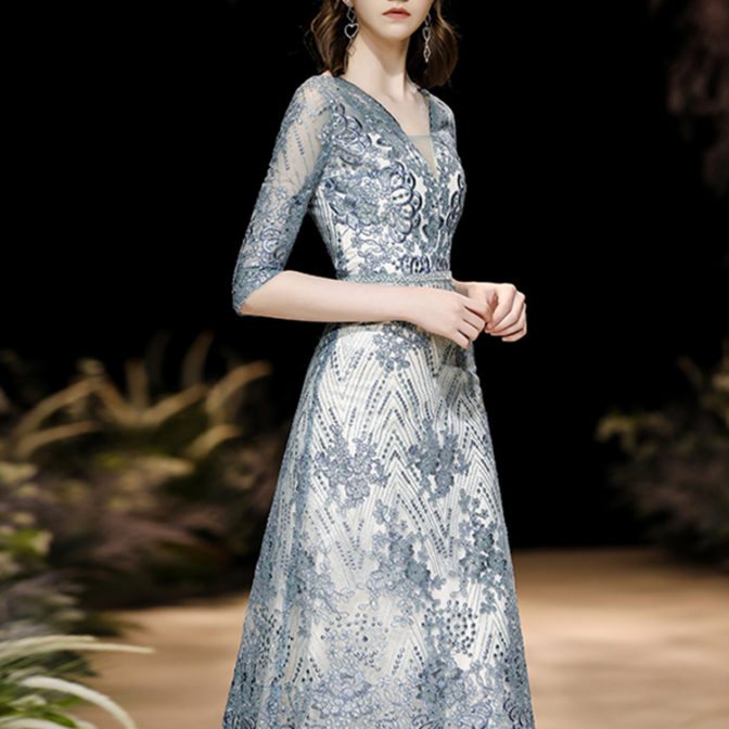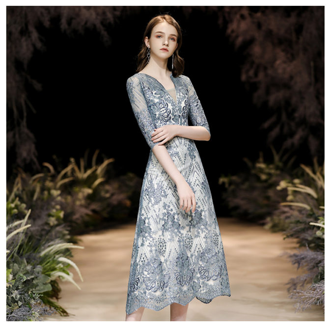 繊細な花柄刺繍がエレガントな佇まいを演出。大人女性の魅力を引き立てます。5分袖のシンプルなシルエットなので結婚式やパーティーなどシーンを選ばず着用いただけます。全3色からお選びください。