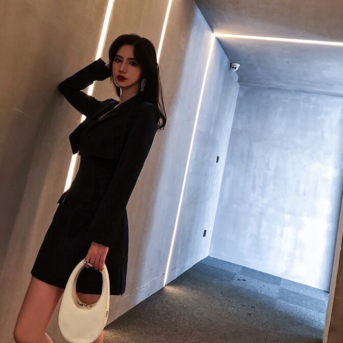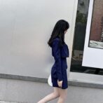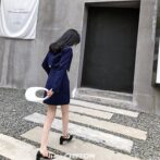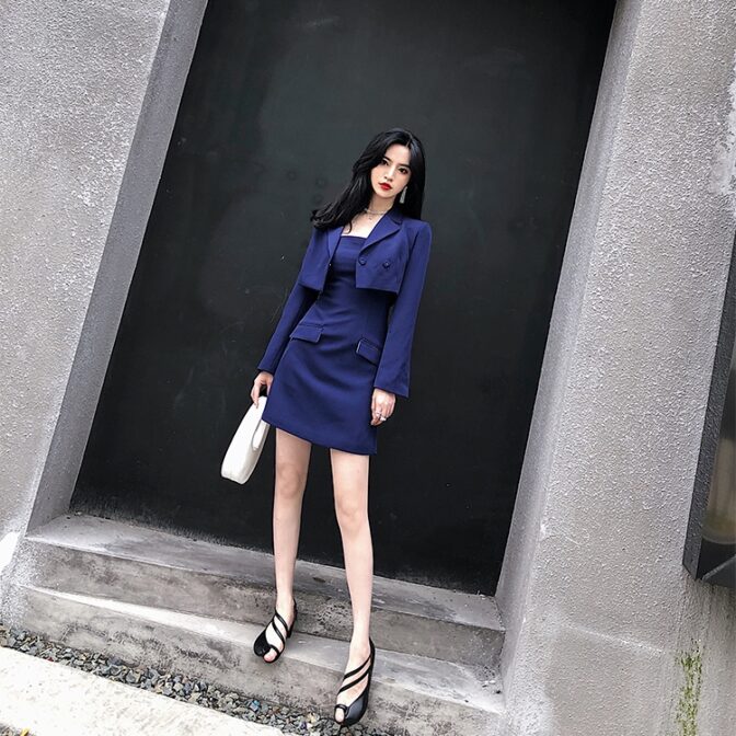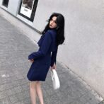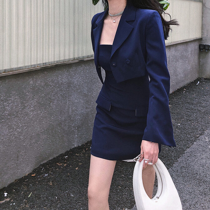 長袖ショートジャケット+ポケット付ワンピース2枚セット☆ネイビー XQ047